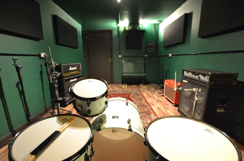 Each rehearsal room comes supplied with 2 guitar amps, 1 bass amp, 1 drum kit (excluding cymbals), 1 kick pedal, as many vocal microphones as required, microphone stands, 1 mixing desk and active P.A. monitors for free. If you require additional